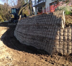La committente aveva necessità di reperire spazi a parcheggio interni alla proprietà. Si è quindi optato per una rimodellazione del terreno circostante alla villa con inserimento di viabilità e parcheggio, ricorrendo all'utilizzo delle terre armate.